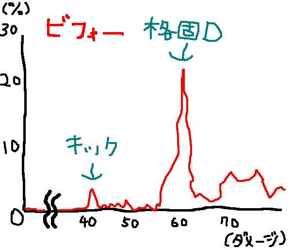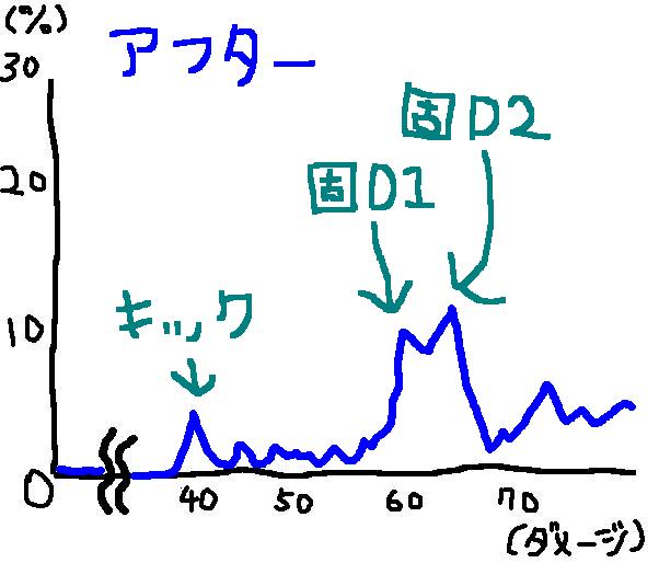 これを念頭に、メリポにおけるモンクの鉄拳によるダメージ分布を図にすると以下のようになる。